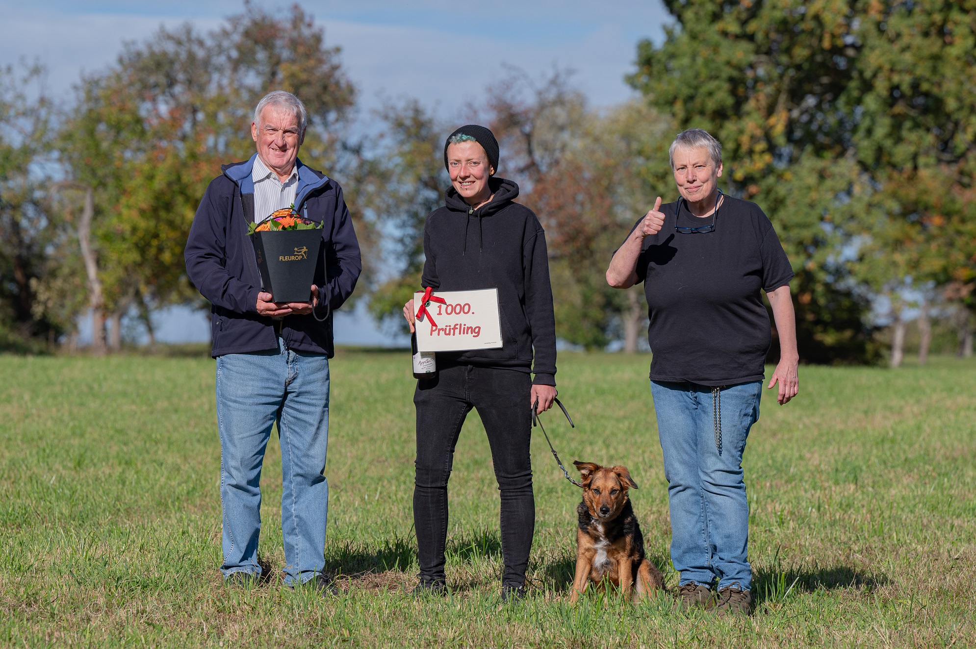 Herzlichen Glückwunsch! Am Sonntag, 22.10.2023, hat BHV-Prüfer Günter Klein seine 1.000.te Hundeführerscheinprüfung abgenommen.