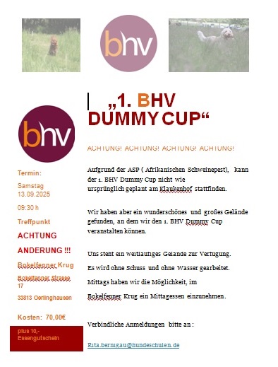 Am 13. September 2025 veranstaltet der BHV seinen ersten Dummy CUP auf traumhaften Gelände bei Gütersloh!