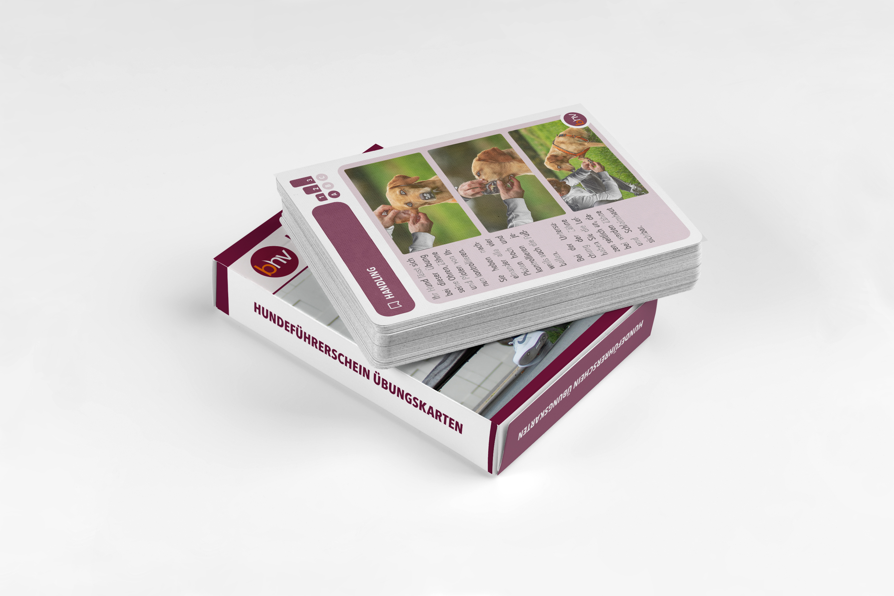Jederzeit dabei im handlichen Format: das neue Übungskarten-Set zum Lernen für den BHV-Hundeführerschein.